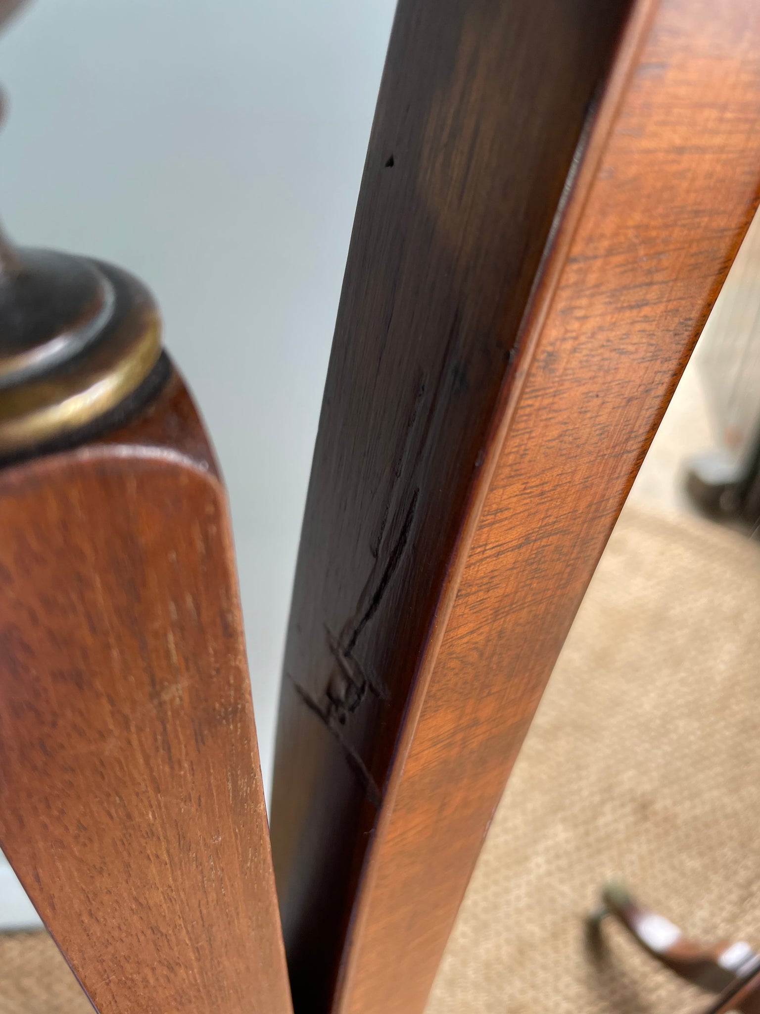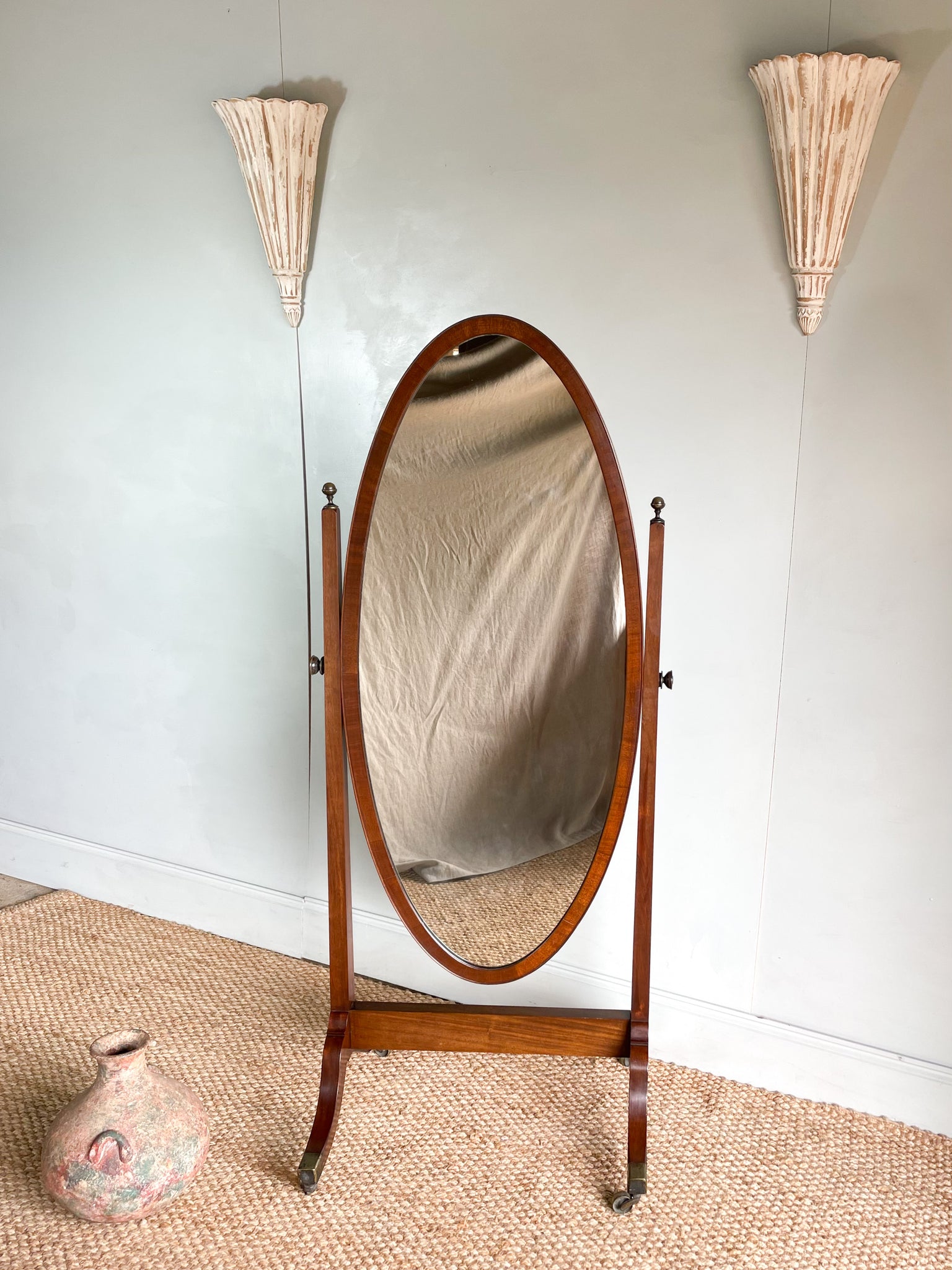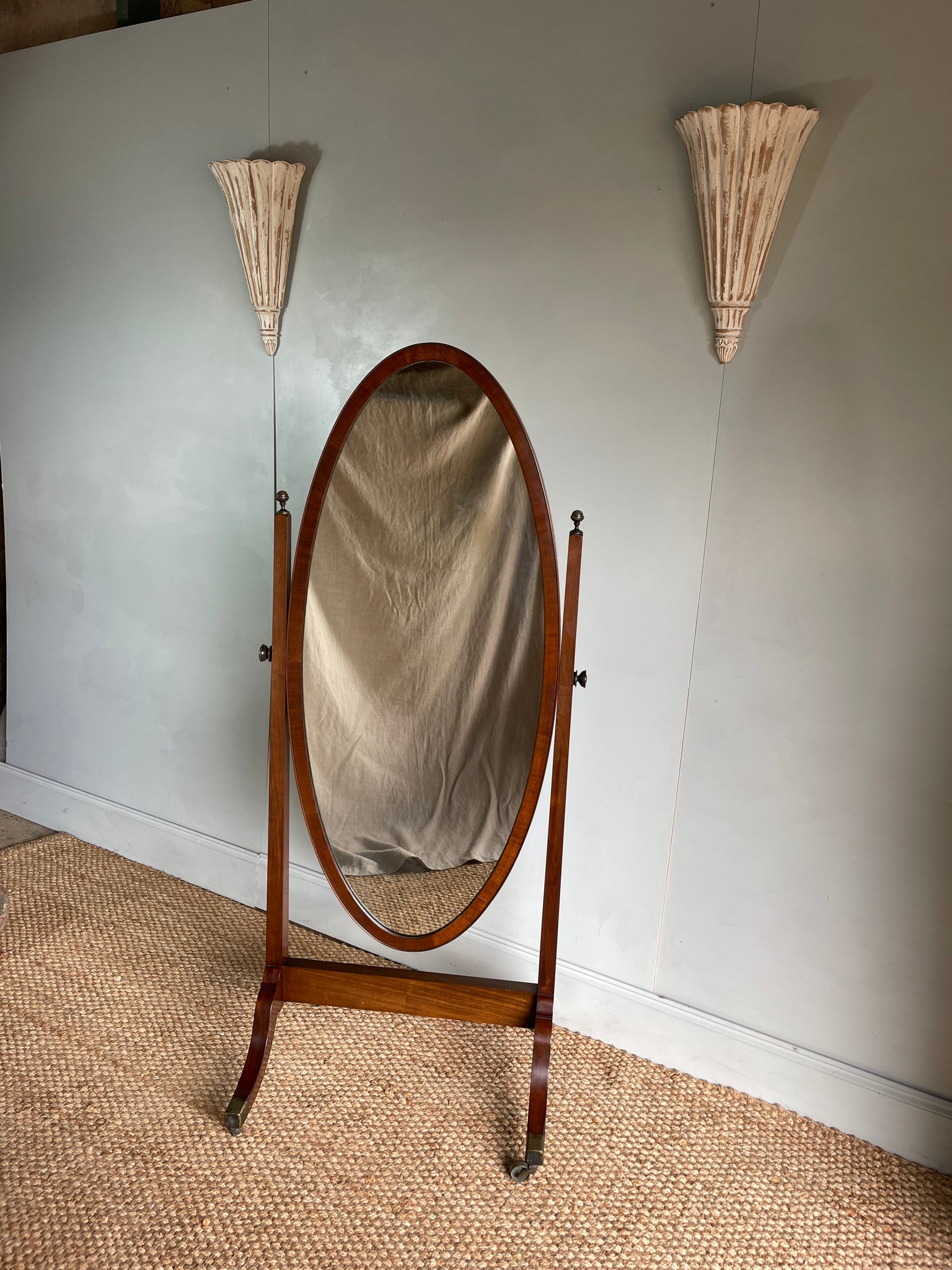 Lovely 1920s Cheval mirror - it’s a good size, overall condition is good but a few marks here and there commensurate with age, I think the brackets at the sides have been replaced at some point… a useful piece for someone looking for a good sized mirror without having to wall hang it, perfect for bedroom, dressing room or bathroom.